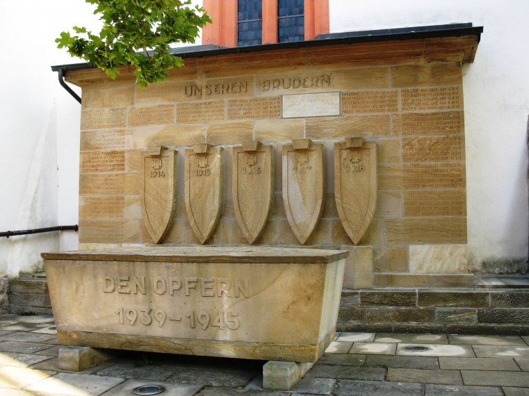 An der evang. Kirche befindet sich gemeindliche Ehrenmal für die Opfer und Toten der Kriege und von Gewalt und Terror. Am Volkstrauertag wird dort der Toten gedacht.