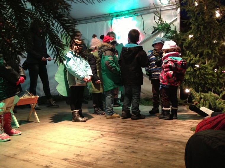 Am Samstagnachmittag wurde der Weihnachtsmarkt durch Ortsbürgermeisterin Müller und den Kindern der Spielwiese eröffnet. Die Erzieherinnen hatten wieder ein schönes Stück einstudiert und der kleine Tannenbaum wurde sehr zur Freude aller anwesenden Eltern, Großeltern, Geschwister und Gäste festlich von den Tieren des Waldes geschmückt. Auch eine Zugabe konnte durch eifriges Beifall klatschen erreicht werden und plötzlich tanzten kleine Nikolausi auf der Bühne.