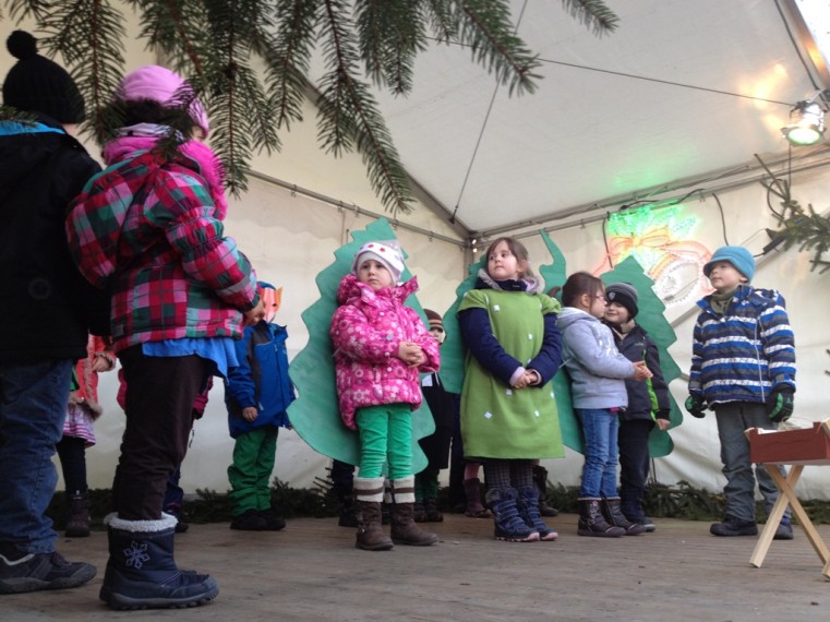 Am Samstagnachmittag wurde der Weihnachtsmarkt durch Ortsbürgermeisterin Müller und den Kindern der Spielwiese eröffnet. Die Erzieherinnen hatten wieder ein schönes Stück einstudiert und der kleine Tannenbaum wurde sehr zur Freude aller anwesenden Eltern, Großeltern, Geschwister und Gäste festlich von den Tieren des Waldes geschmückt. Auch eine Zugabe konnte durch eifriges Beifall klatschen erreicht werden und plötzlich tanzten kleine Nikolausi auf der Bühne.