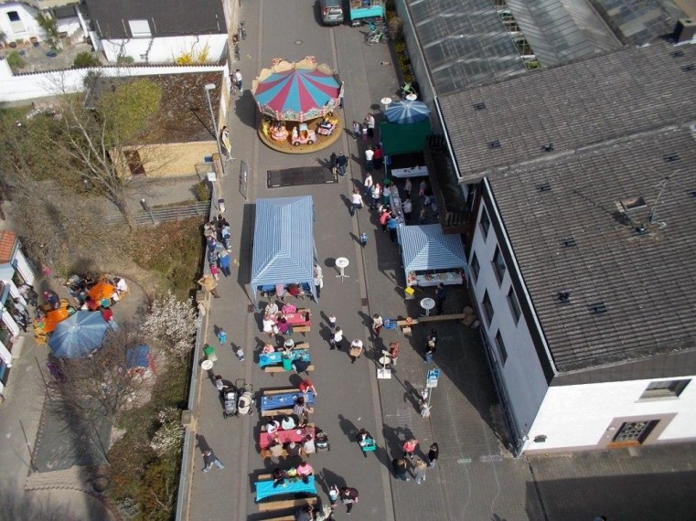 Ein Glücksrad sorgte für zusätzliche Abwechslung mit süßer Belohnung. Das organisierte Karussell und der Flug im Fahrkorb eines BOTT-Autokranes mit Blick aus "40" Metern Höhe über das Fest und ganz Wöllstein rundeten die Attraktionen ab. Tische und Bänke waren geschmückt und luden zum Verweilen ein. Eltern, Großeltern und Besucher saßen mitten im Geschehen und konnten den Kindern bei ihren verschiedenen Aktivitäten zuschauen.