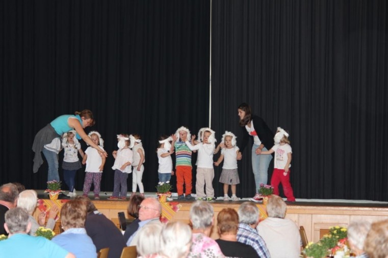Nach der Begrüßung durch Ortsbürgermeisterin Müller zeigten die Kleinen aus der KiTa Rasselbande in einem netten Lied, was Schafe so treiben.