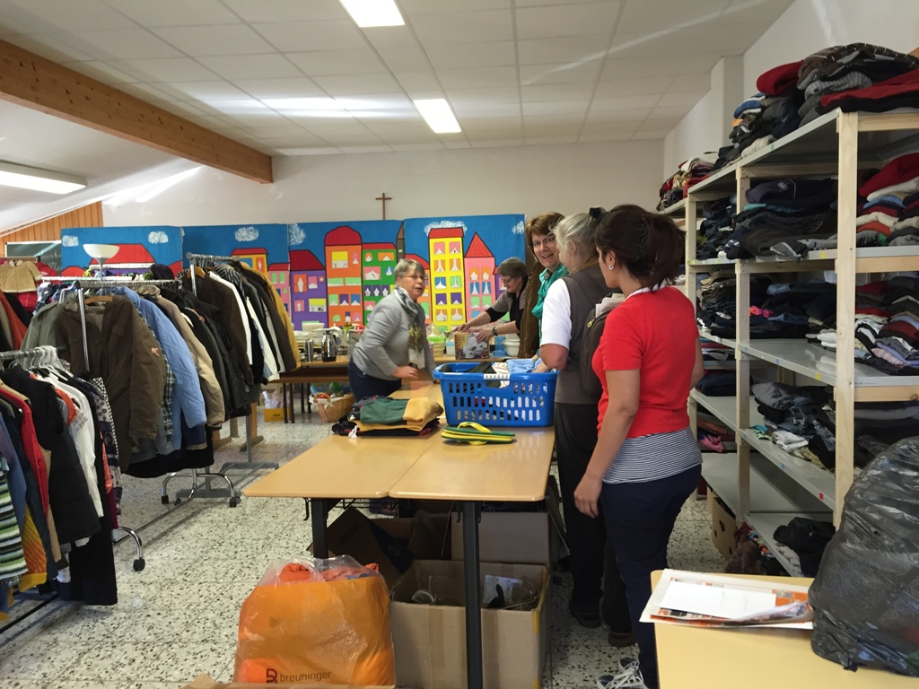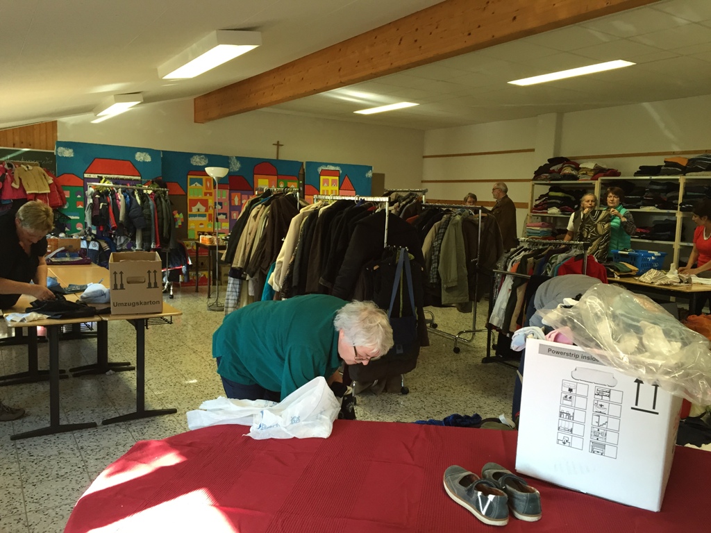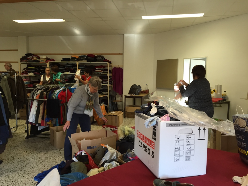 Immer mittwochs von 16:00 Uhr bis 17:30 Uhr gibt es für Bedürftige die Kleiderkammer in der Sporthalle der Realschule plus, 1. OG in der Schulrat-Spang-Straße 7 in Wöllstein. Die Abgabe von Kleidung kann ebenfalls an diesem Tag, aber bereits ab 15:00 Uhr erfolgen. In den Schulferien bleibt die Kleiderkammer geschlossen. Hier ein paar Fotos von den ehrenamtlichen Helfer und Helferinnen, die den Raum voll bestückt haben.