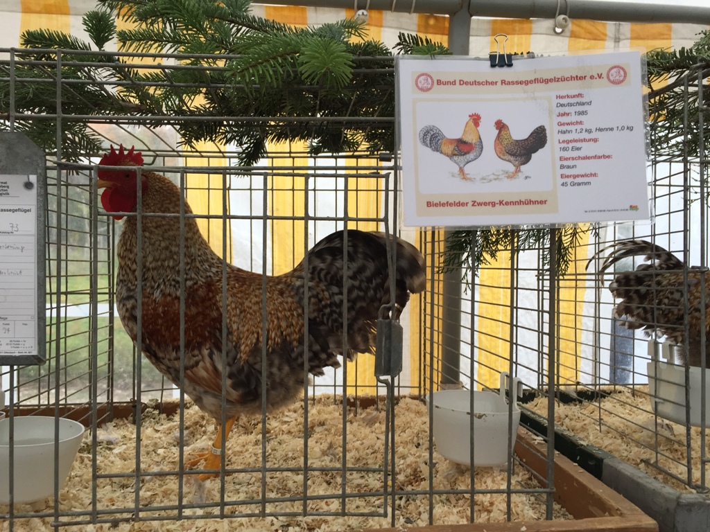 Der Geflügelzuchtverein Wöllstein hatte zum Tag der offenen Tür eingeladen und die Züchter präsentierten nicht nur ihre Rassetiere sondern hatten auch für das leibliche Wohl der Besucher und Besucherinnen gesorgt. Interessiert konnten viel erfahren über die Eigenschaften der verschiedenen Geflügel, Kampfhähne, Zwerghühner, wieviel Eier sie legen und vieles mehr.