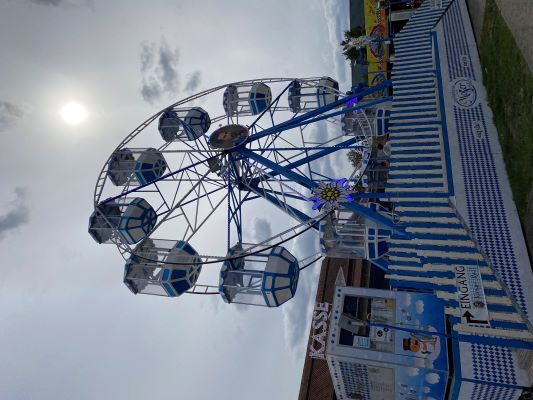 In diesem Jahr gab es trotz „ausgefallenem“ Markt eine ganz besondere Attraktion. Vor dem Gemeindezentrum stand das Riesenrad der Familie Moser und bei einigen Runden in luftiger Höhe konnte man eine wunderschöne Aussicht auf Wöllstein genießen. Für die Kleinen durfte natürlich ein Karussell nicht fehlen.