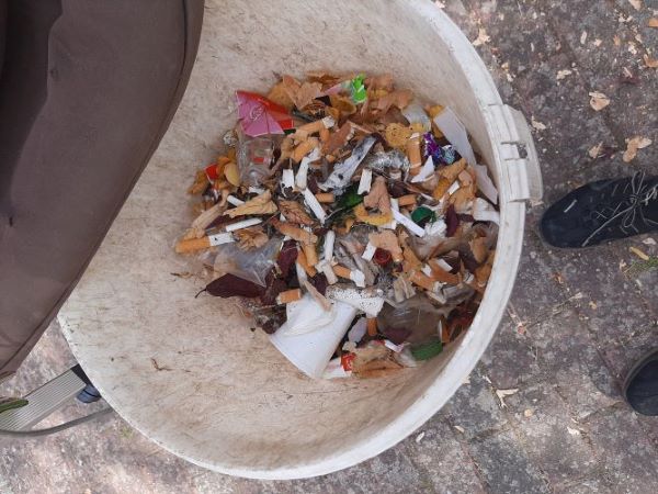 Das Foto zeigt, welcher Müll an einem Sonntag von Bürgern ehrenamtlich in 45min. rund um das Gemeindezentrum eingesammelt wurde.