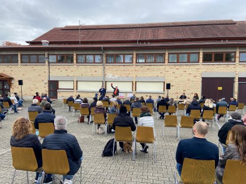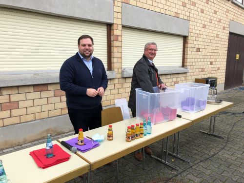 Als Losfee fungierte Verbandsbürgermeister Gerd Rocker und Ortsbürgermeister Johannes Brüchert moderierte die Veranstaltung, welche auf dem Parkplatz des Wöllsteiner Gemeindezentrums stattfand. Die strengen Corona-Regeln machten eine intensive Vorbereitung und eine Durchführung im Außenbereich notwendig.