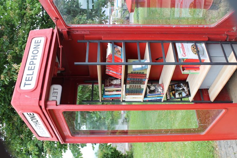 Nachdem die englische Telefonzelle vor dem Gemeindezentrum einen neuen Anstrich bekommen hat, wurde sie einer neuen Funktion zugeführt: Ab jetzt befindet sich ein öffentlicher Bücherschrank darin, der kostenlos genutzt werden kann.