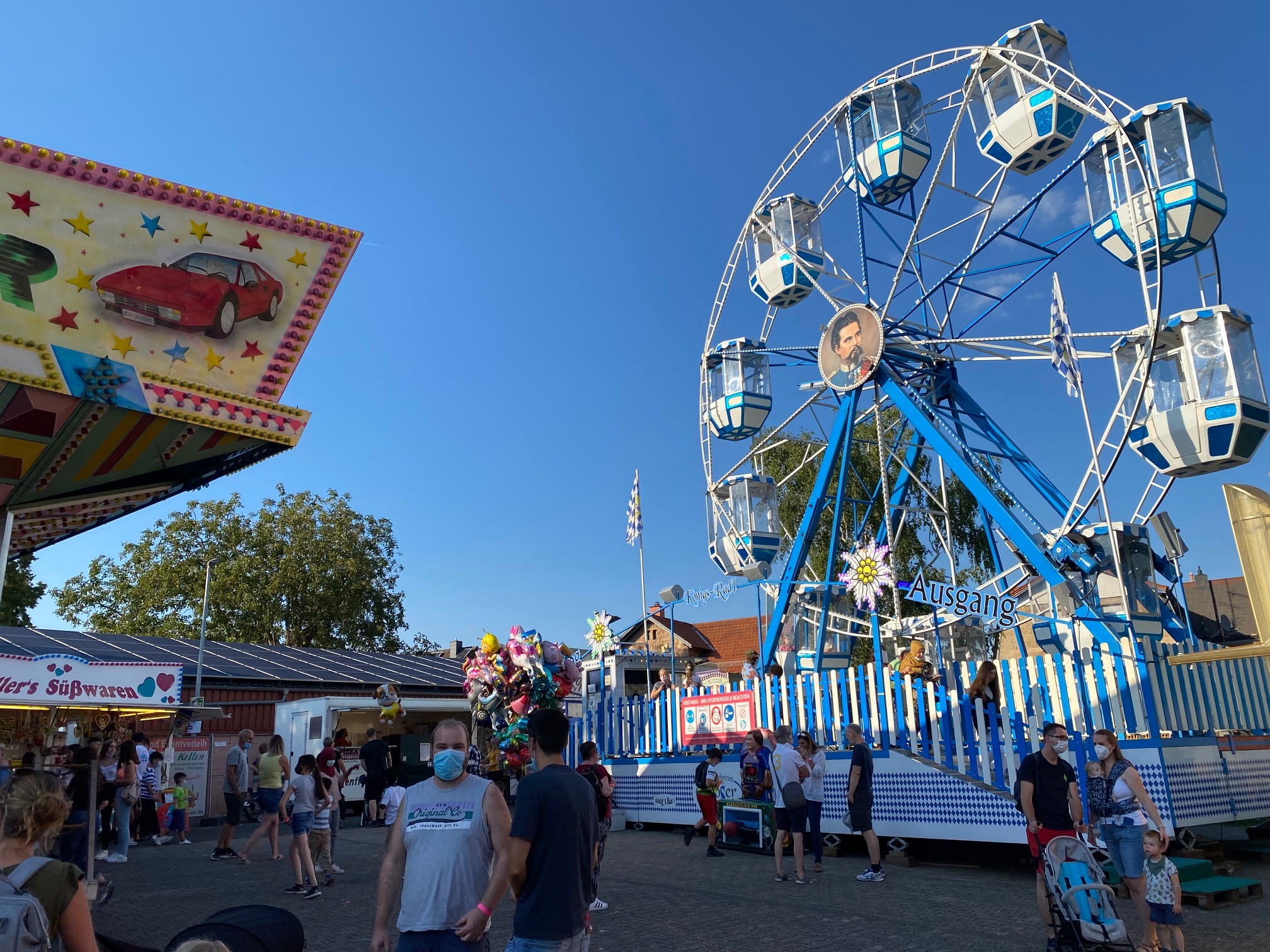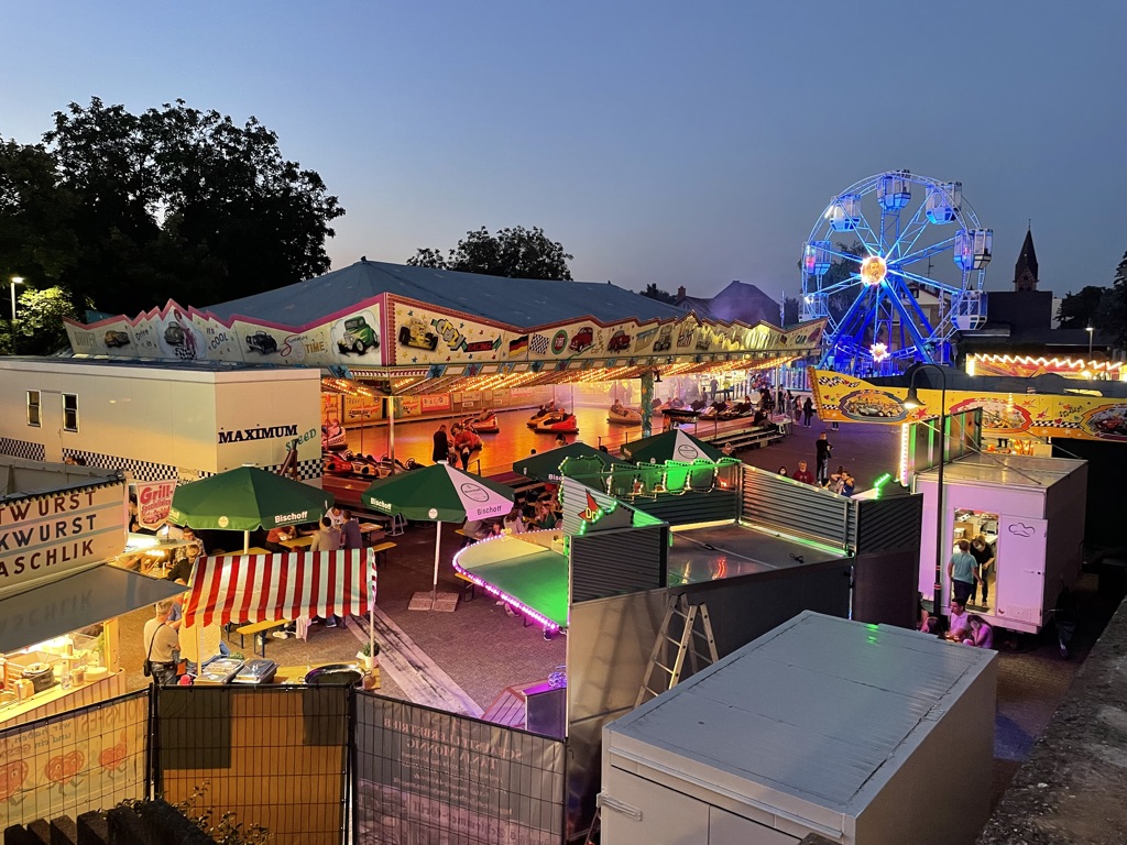 Neben der Weinprobe zur Eröffnung des Wöllsteiner Marktes lockte das perfekte „Markt-Wetter“ bereits Freitagabend viele Gäste auf den Festplatz vor dem Gemeindezentrum. Nach Kontaktdatenerfassung und mit Eintrittsbändchen ausgerüstet wartete ein breites Angebot auf dem Rummel. Neben den bekannten Fahrgeschäften Autoscooter und Karussell gab es in diesem Jahr auch ein Riesenrad mit wunderschönem Ausblick über Wöllstein. Ebenso luden verschiedene Buden, Getränke- und Imbissstände zu viel Spaß, Speis‘ und Trank ein.