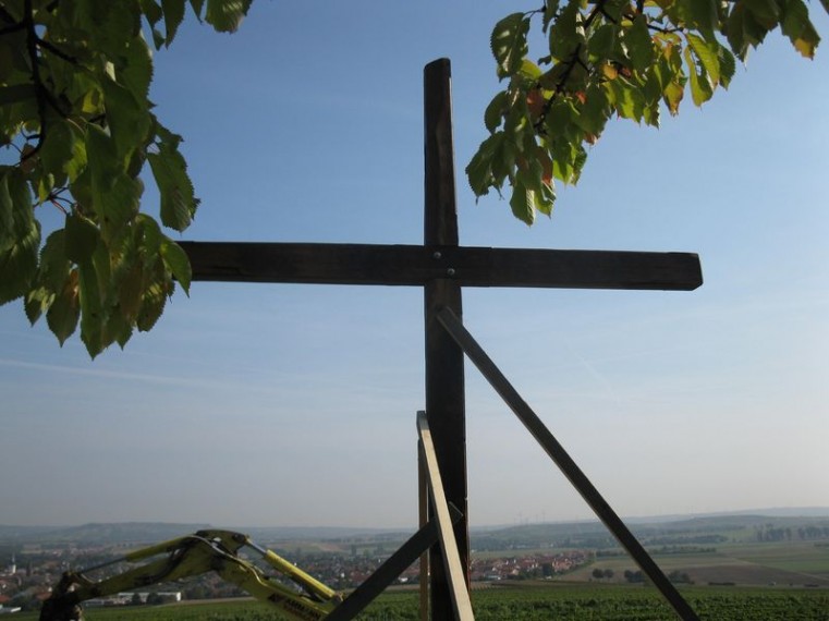 Bei herrlichstem Spätsommerwetter fanden sich am Samstag, 24.09.2011, frohe Menschen auf dem Höllberg ein: Unterhalb des Wasserhochbehälters wurde ein Kreuz errichtet.
