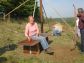 Unser Respekt und Dank gilt aber vor allem dem Zimmermann, Herrn Birkenmaier (76 Jahre), der mehrfach aus Lübeck anreiste um in der Scheune von Frau Koch das Kreuz zu zimmern. Dies mit alten Eichebalken aus einem ehemaligen Wöllsteiner Fachwerkhaus aus dem 18. Jahrhundert. Und Herr Birkenmaier ließ es sich auch nicht nehmen beim Aufstellen mit dabei zu sein. Er kann stolz auf sein Werk sein!