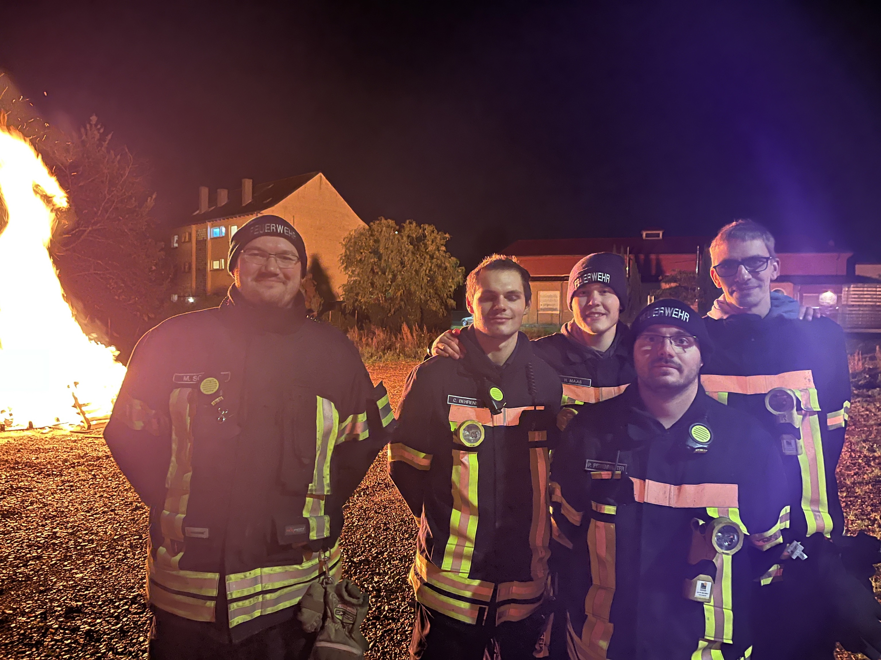 Am Feuerwehrgerätehaus wurden die Teilnehmer des Umzugs schon mit Glühwein, Punsch und Bratwurst erwartet und für die Kinder wurden Buweschenkel / Weckmänner durch die Kitas der Ortsgemeinde verteilt.