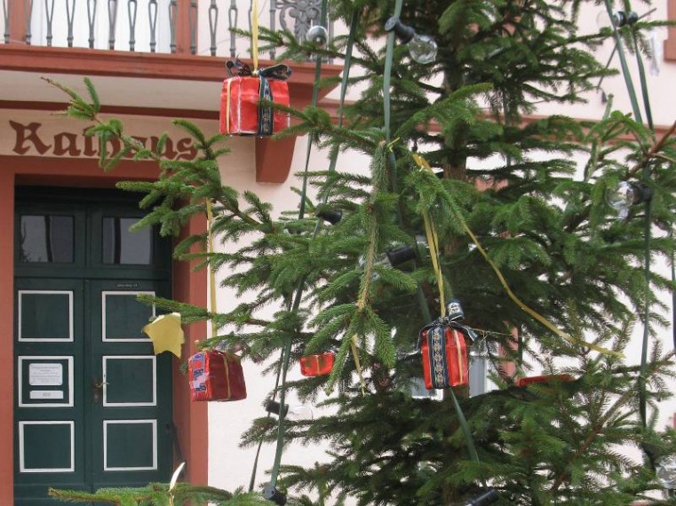 Am Freitag vor dem 2. Advent machten sich alle Kinder und Erzieherinnen des Kindergartens Spielwiese auf den Weg in die Ernst-Ludwig-Straße zum Weihnachtsbaum gegenüber dem Wöllsteiner Rathaus. Im Gepäck hatten sie Sterne, glänzende Päckchen und anderen selbst gebastelten Weihnachtsschmuck.