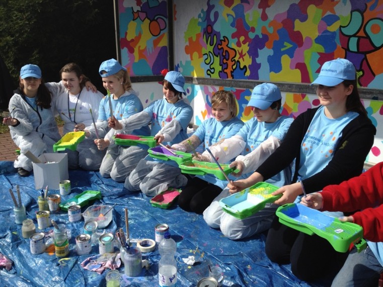 Als Mitarbeiter der RWE Bad Kreuznach hat Georg Sternagel im Rahmen der Aktion "Aktiv vor Ort, Mitarbeiter für Mitmenschen" für das Sponsoring der Farben gesorgt und Schülerinnen der Realschule plus übernehmen die Gestaltung.