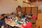 Den ganzen Tag nur basteln und werkeln geht natürlich nicht. Zwischendurch konnten die Kinder auch mal Ball- und Laufspiele mit den Betreuern machen, nach eineinhalb bis zwei Stunden war vormittags die Luft erstmal raus. Das war ja kein Problem, solange das Wetter mitspielte. Am Mittwoch war das nicht der Fall, da hat es geregnet, war windig und kalt. Aber das Betreuerteam wusste Rat: Im Gemeindezentrum wurden Tische und Stühle zusammengeschoben und Platz geschaffen, damit die Kinder sich drinnen ein bisschen austoben konnten.