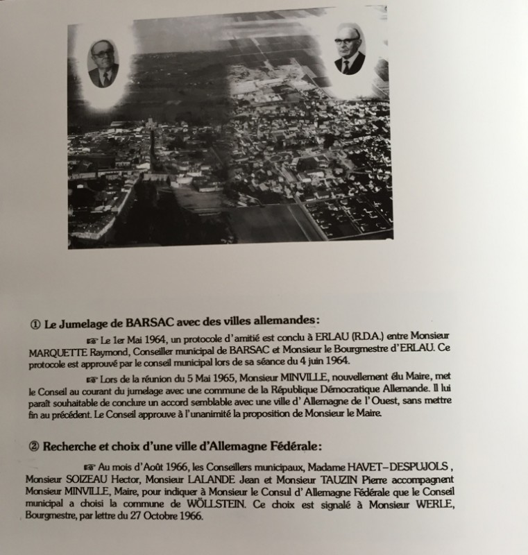 Ein weiteres Geschenk hat die Gemeindeverwaltung Barsac, vertreten durch Bürgermeister Dominique Cavaillols, die Beigeordneten Anne-Marie Peneau und Philippe Block, überreicht: