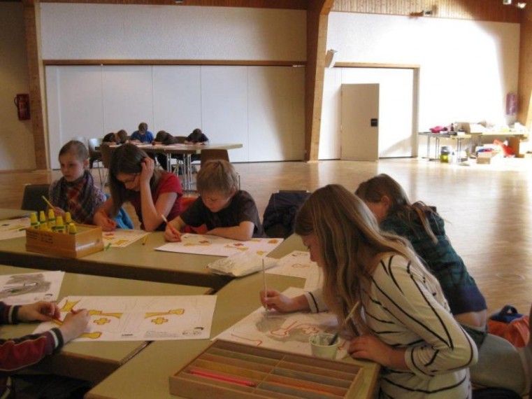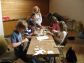 Um 10.00 Uhr war es dann endlich soweit und die kühnen Recken und liebreizenden Mägdeleyn nahmen das Gemeindezentrum in Beschlag. Der Vormittag stand ganz im Zeichen von Bastel- und Werkangeboten. Da wurden Glücksbringer aus Speck- stein gefeilt, kleine Holzschatztruhen kunstvoll bemalt, Schmuck aus wertvollen Perlen gefädelt, Kronen aus Goldkarton geschnitten und da es im Mittelalter noch keine Hosentaschen gab, Gürteltaschen aus Filz genäht. Wer von den Aktivitäten am Wochenende noch etwas schläfrig war, konnte sich im Kinderkino einen Film anschauen.