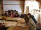 erwartungsvoll vor den Türen des Gemeindezentrums.