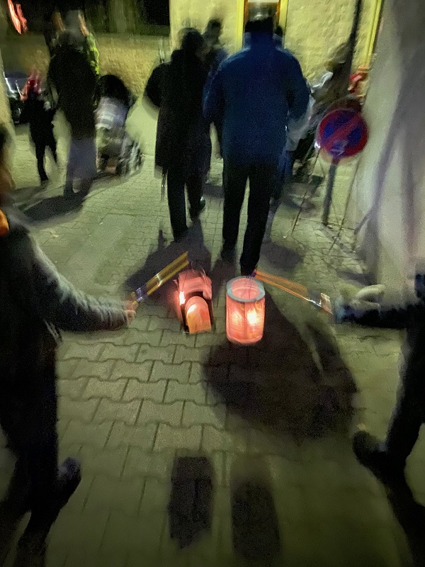 Im Anschluss an den Wortgottesdienst setzte sich der St. Martins-Umzug von der Kirchstr. durch Eleonorenstr. und Ernst-Ludwig-Str. Richtung Feuerwehrhaus in Bewegung. Begleitet wurde der Umzug natürlich wieder durch die Katholische Kirchenmusik Wöllstein-Badenheim. Am Feuerwehrhaus angekommen, gab es für die Kinder die traditionellen Buweschenkel und alle konnten sich bei Glühwein, Punsch und Würstchen a, großen Martinsfeuer wärmen.